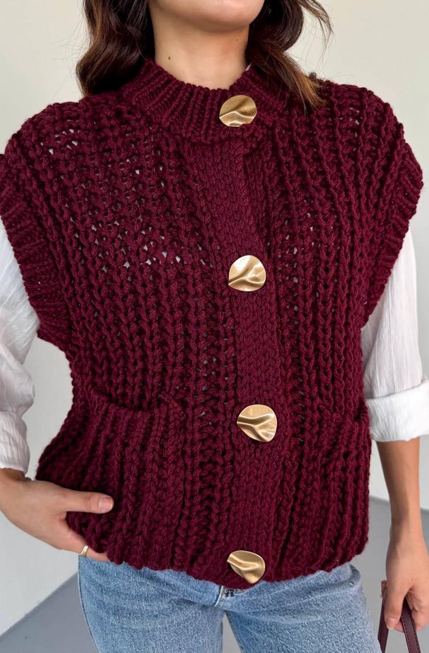 Cepli Bisiklet Yaka Kalın Örgü Yelek