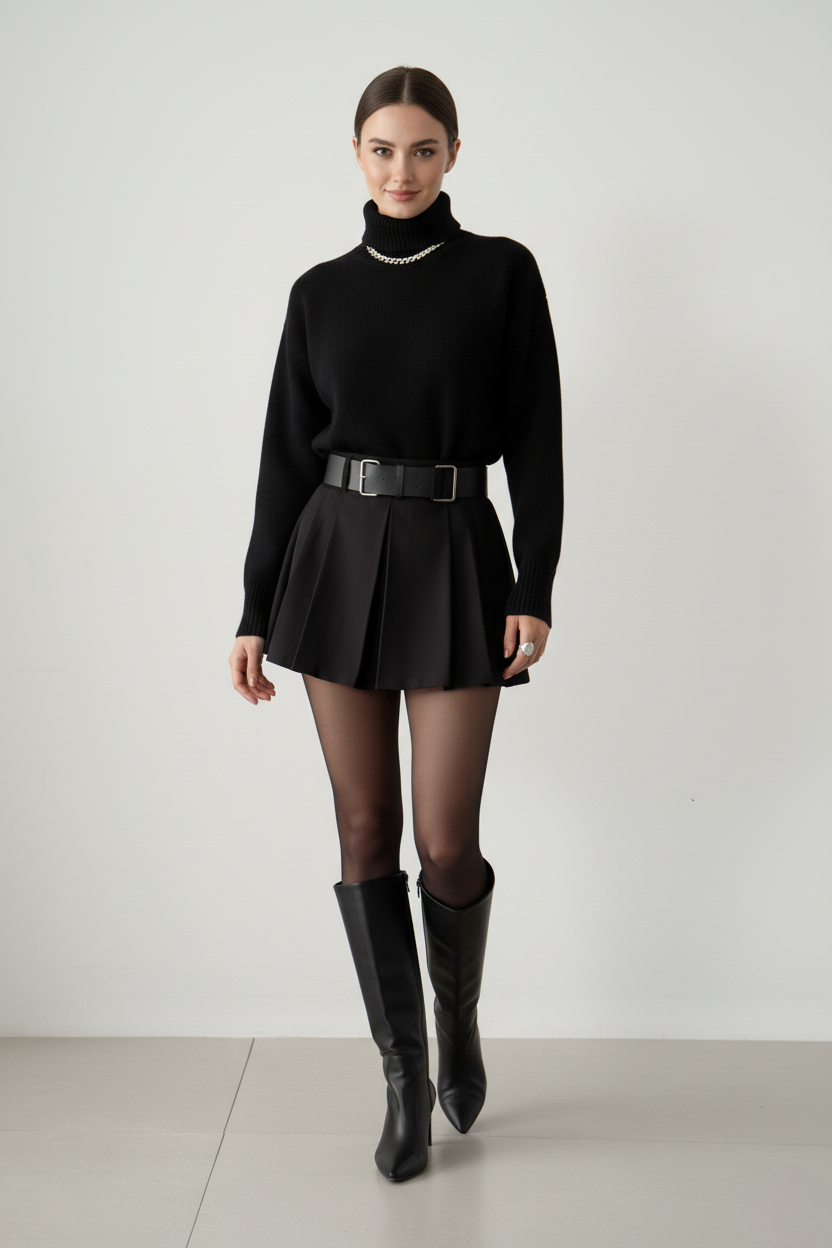Saç Örgü Detaylı Etek Kazak Takım